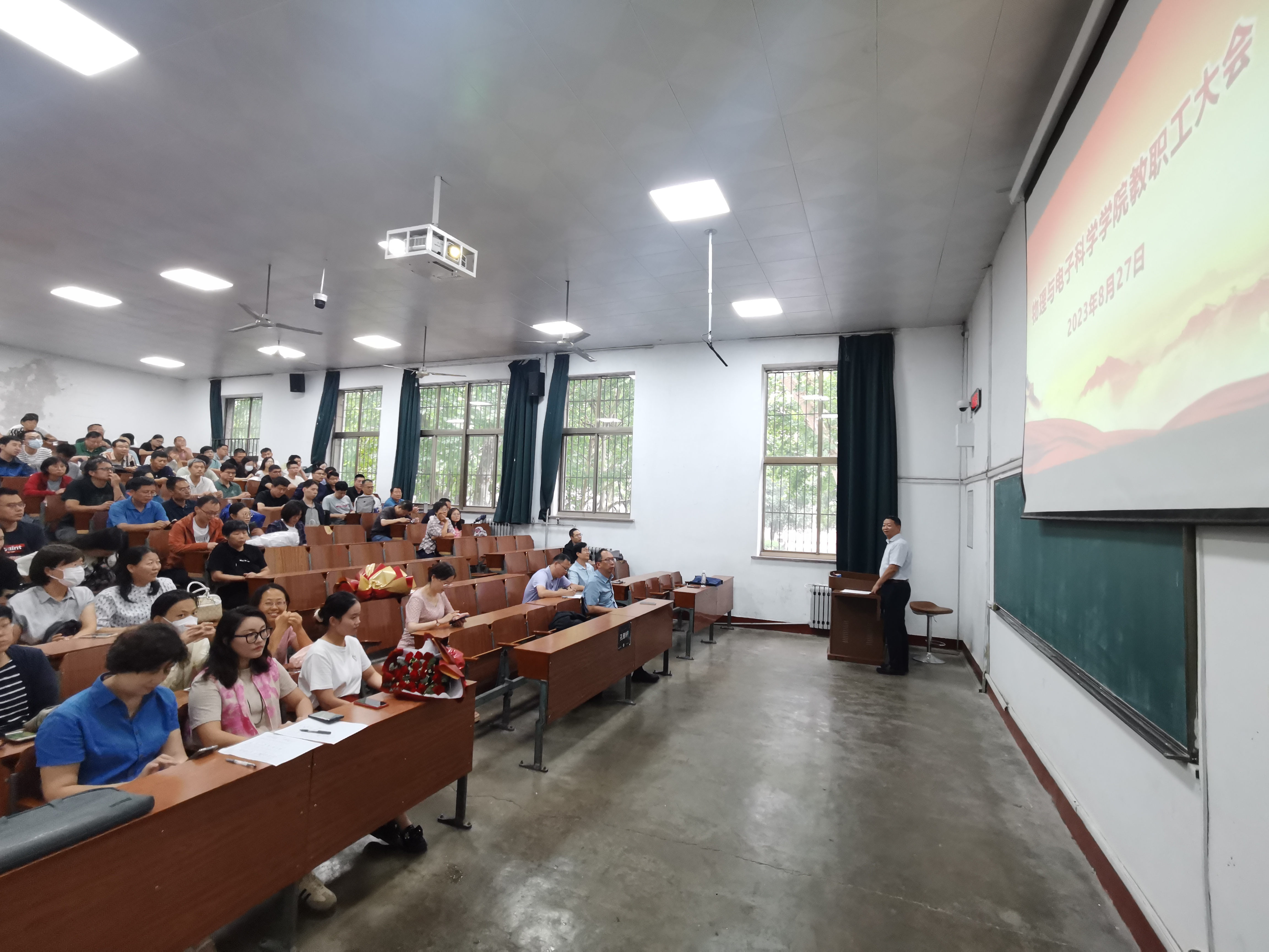 9月8日下午,英国365上市公司于文浚楼150室举行2023年教师节座谈会暨2023级新生见面会。365上市公司副校长、学院院长蔡阳健,院党委书记谢德仁,副院长宋玉志,副院长、电子系主任王晶晶,工会主席修显武,物理系主任胡贵超,退休教师代表李健,青年教师代表张超,学工办主任、团委书记方芳出席见面会,2023级新生辅导员于双阳、张雨辰,全体本科生、研究生新生参加。见面会由党委副书记杜伟主持。蔡阳健发表讲话,向参加本次见面会的教职工致以节日问候和祝贺,...