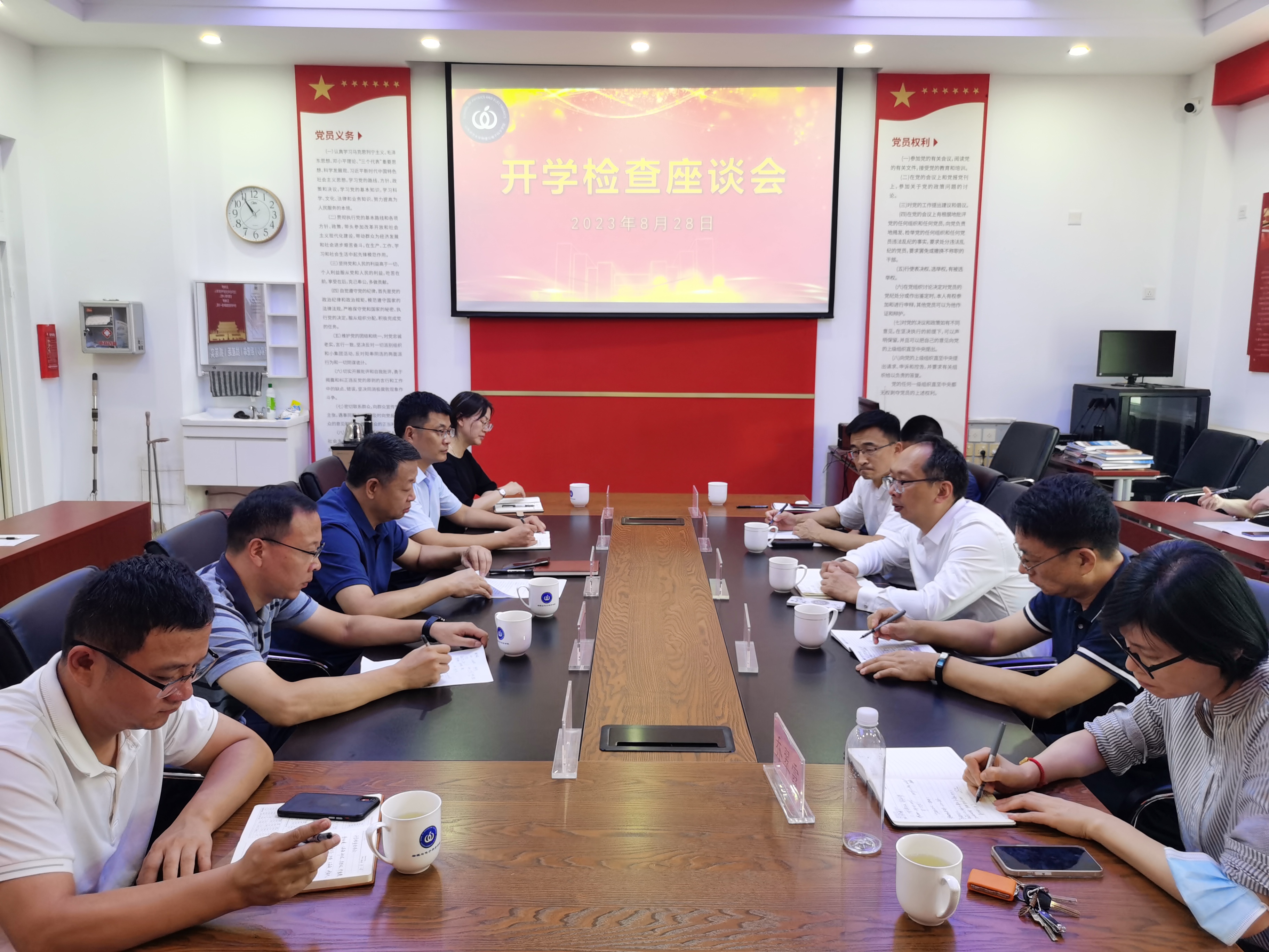 8月27日下午,学院在千佛山校区2214教室召开新学期全体教职工大会,传达学校2023年工作动员大会精神,安排部署新学期各项工作任务。会议由学院党委书记谢德仁主持。副校长兼院长蔡阳健回顾了今年以来人才引进和基金立项情况,激励老师们要响应学校号召,聚焦“四大”建设,集中精力冲刺,积极谋划国家自然科学基金、科技教学成果奖的申报和高水平论文的发表,全面提升学科建设水平和教学水平。谢德仁简要总结了暑假期间学院完成的各项工作,...