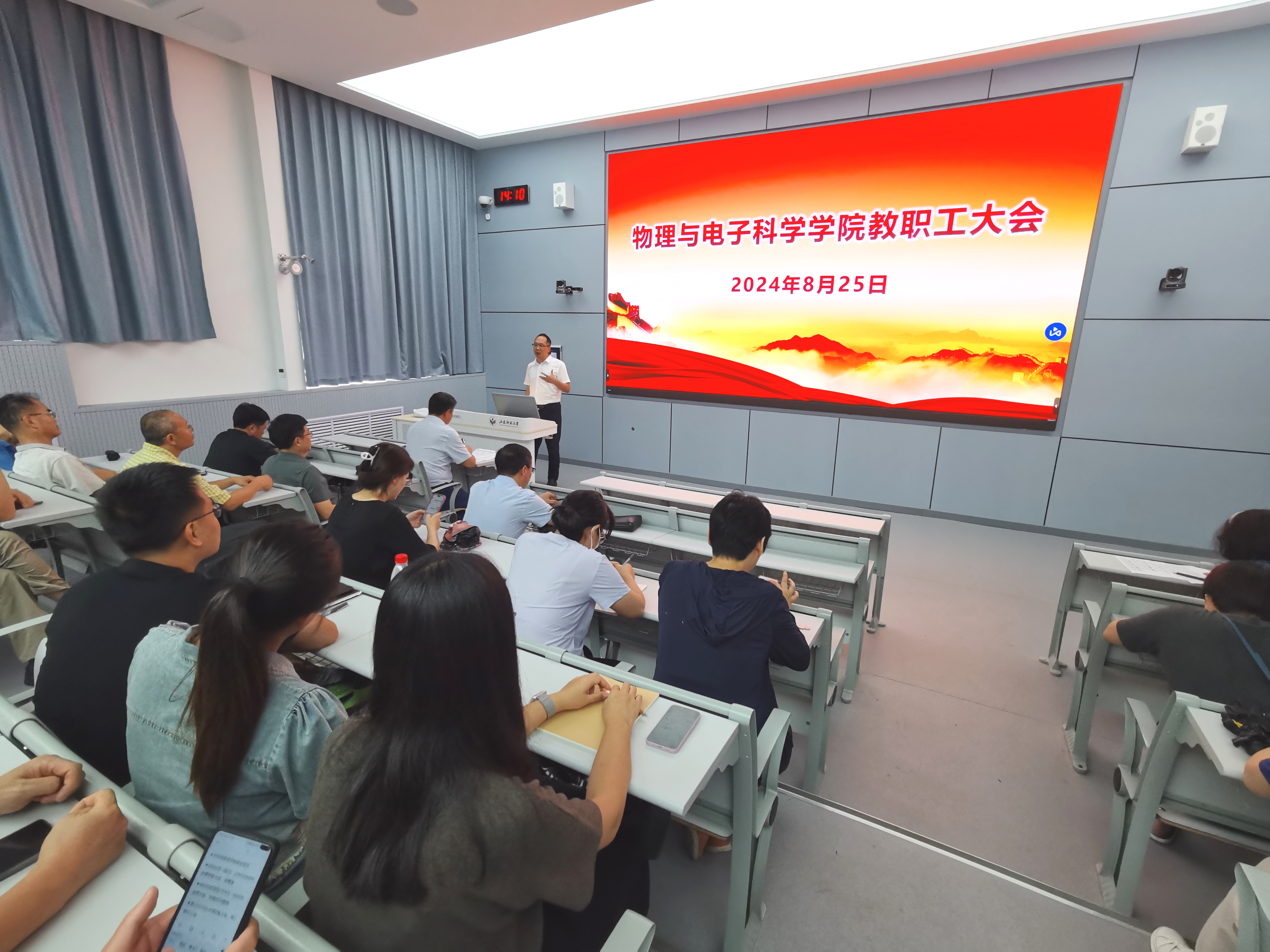 8月25日下午,学院在千佛山校区1215智慧教室召开新学期全体教职工大会,传达学校2024年工作动员大会精神,安排部署新学期各项工作任务。会议由学院党委书记谢德仁主持。副校长兼院长蔡阳健回顾了上半年人才引进和基金立项情况,分析了目前学院面临的困难和形势。鼓励老师们紧跟学校步伐,坚持走团队建设路线和高质量发展模式,争取拿更多的国家级项目,为学院发展做出更大的贡献。谢德仁简要介绍了上半年退休、新入职教工情况以及学院2023年度绩效分配实施方案,...