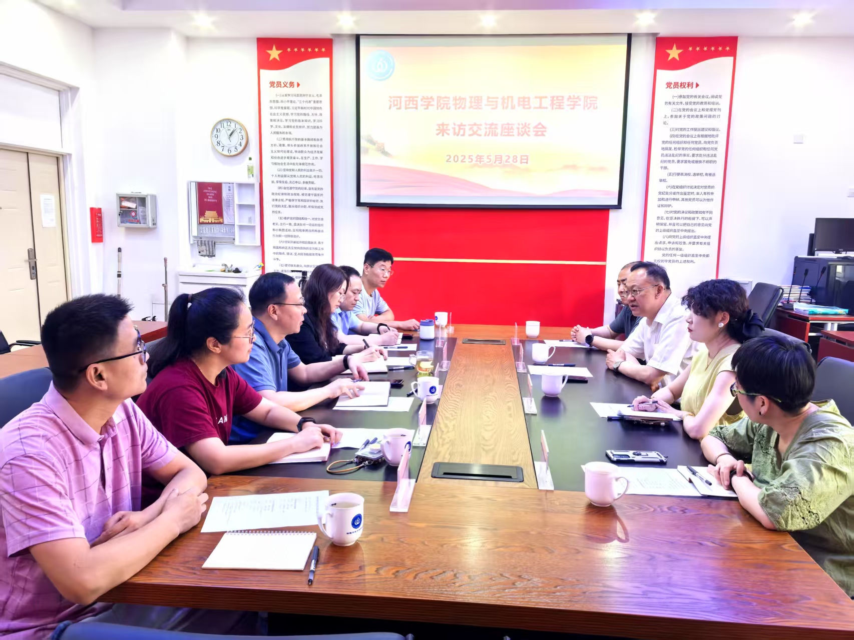 5月28日,河西学院物理与机电工程学院党委书记石建锋、副院长熊丽、物理教研室主任何永林、学工办主任石砚一行到我院交流座谈。双方于文澜楼A区F311会议室召开座谈会,学院副院长宋玉志、王晶晶,学工办主任、团委书记方芳,电子系主任宋蓬勃、副主任虞刚、张广平教授出席。宋玉志对石建锋一行的到来表示欢迎,简要介绍了学院整体情况,指出两家互为协作办学单位,在专业设置、办学理念、党建融合、学科建设等方面有很多互鉴意义,本次来访为双方事业发展搭建了一个很好的沟通交流平台。...