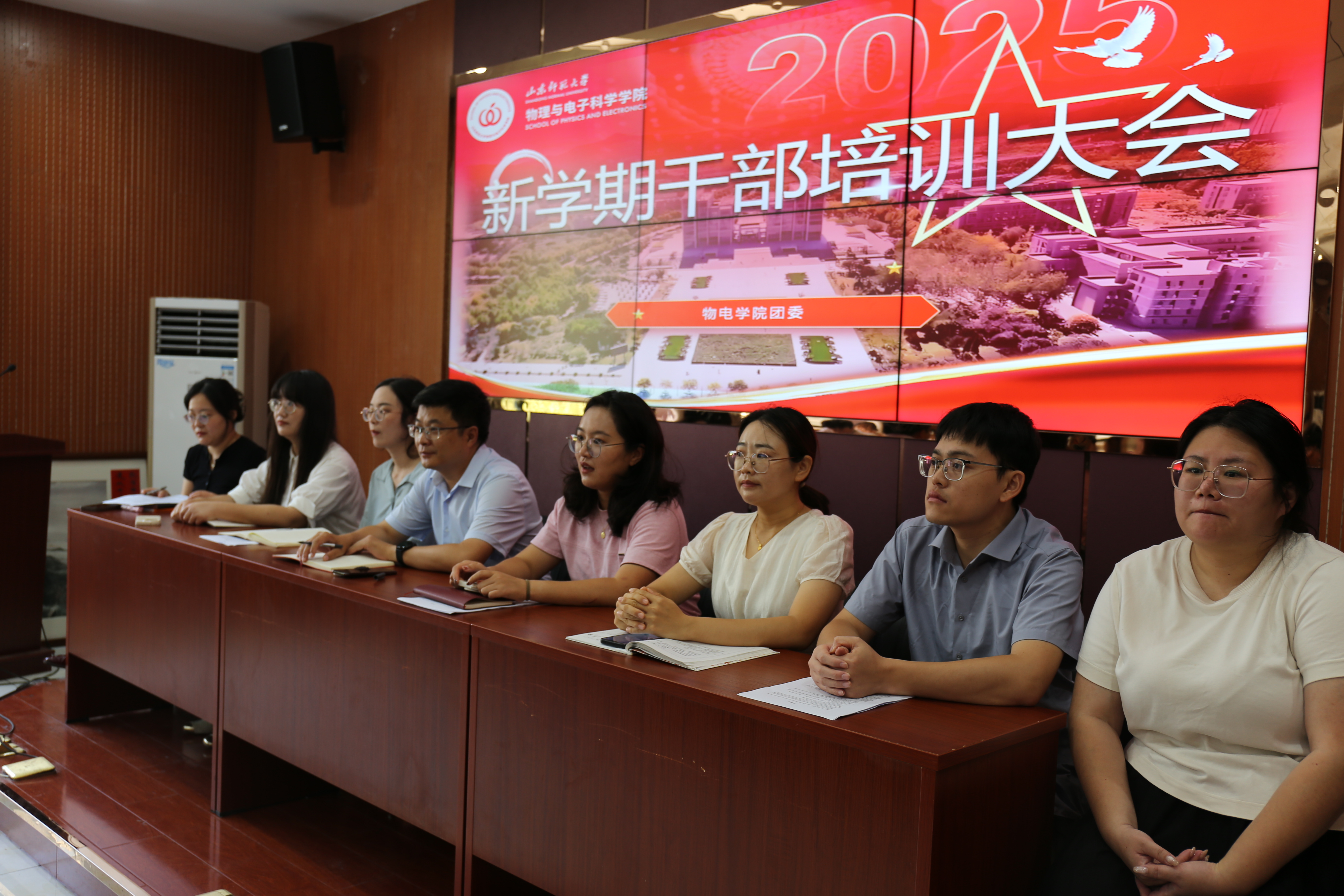 9月7日,英国365上市公司于文澜楼F347室召开新学期干部培训大会。党委副书记杜伟,团委书记、学工办主任方芳,各年级辅导员,学生代表参加会议。会议开始,三位学生会主席依次上台发言。周禹从加强自身建设、提升服务水平等四个方面提出对未来工作的展望与规划。祝晓宇表达了对成为学生会主席的荣幸与珍视,同时也展现出对这份职责的清醒认知。杨哲以自身为例呼吁大家端正工作态度。接着,发展部和科创中心、文体部、青年媒体中心、...