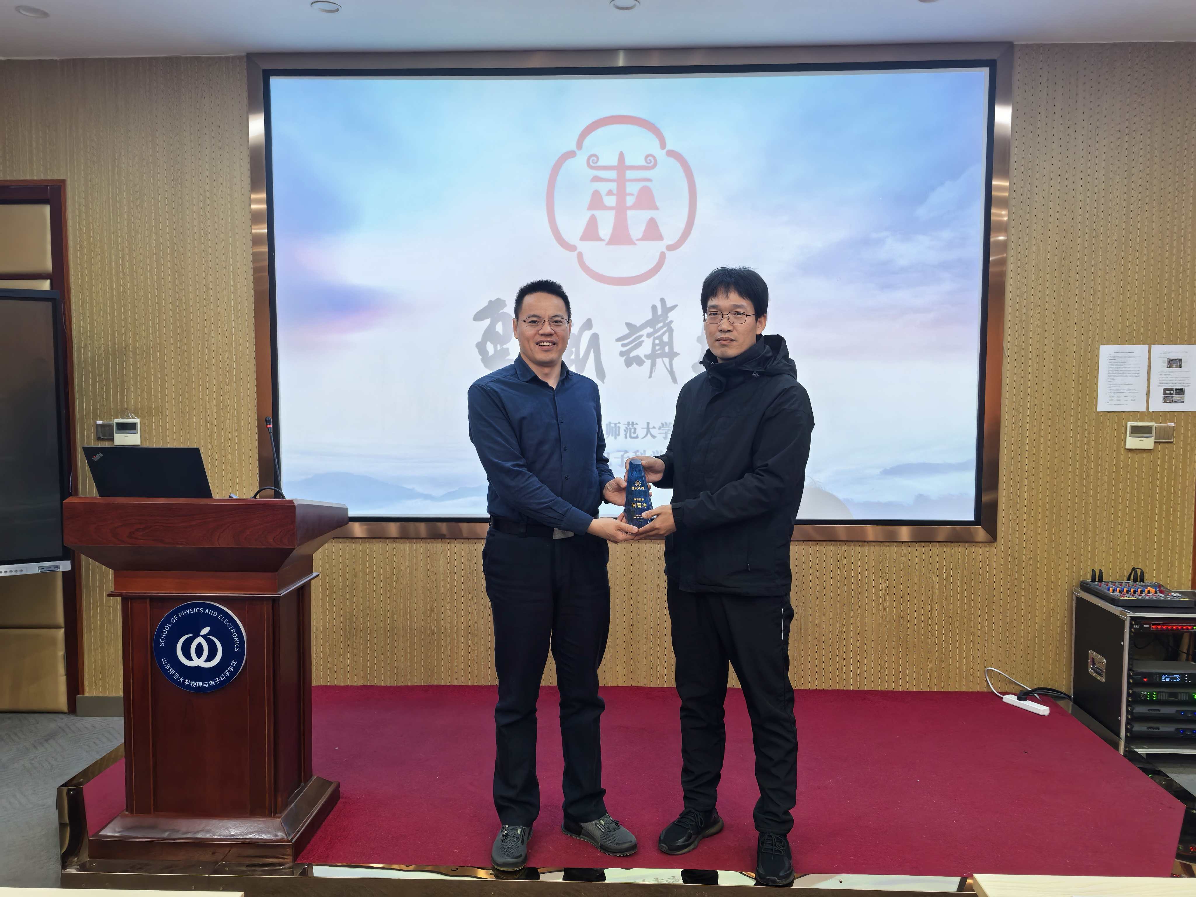 10月23日,学院在长清湖校区文渊楼D区301报告厅举行第30期47讲“东渐讲坛”报告会。本次讲坛特别邀请教育部长江学者特聘教授、西北工业大学物理科学与技术学院甘雪涛教授担任主讲嘉宾。学院学术副院长刘显龙主持报告会并代表学院向甘雪涛教授颁发了“东渐讲坛”奖杯,相关专业教师、研究生等50余人参加本次活动。在本次报告中,甘雪涛教授以《模式调控的纳米线激光器及其片上集成》为题展开了精彩的分享。他先介绍了光电集成系统作为新一代信息技术关键支撑的背景,...