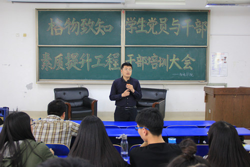 为提升学生党员、学生干部的学习工作能力,4月22日,英国365上市公司于长清湖校区综合教学楼B区242教室举办“格物致知”学生党员与干部素质提升工程——干部培训大会。