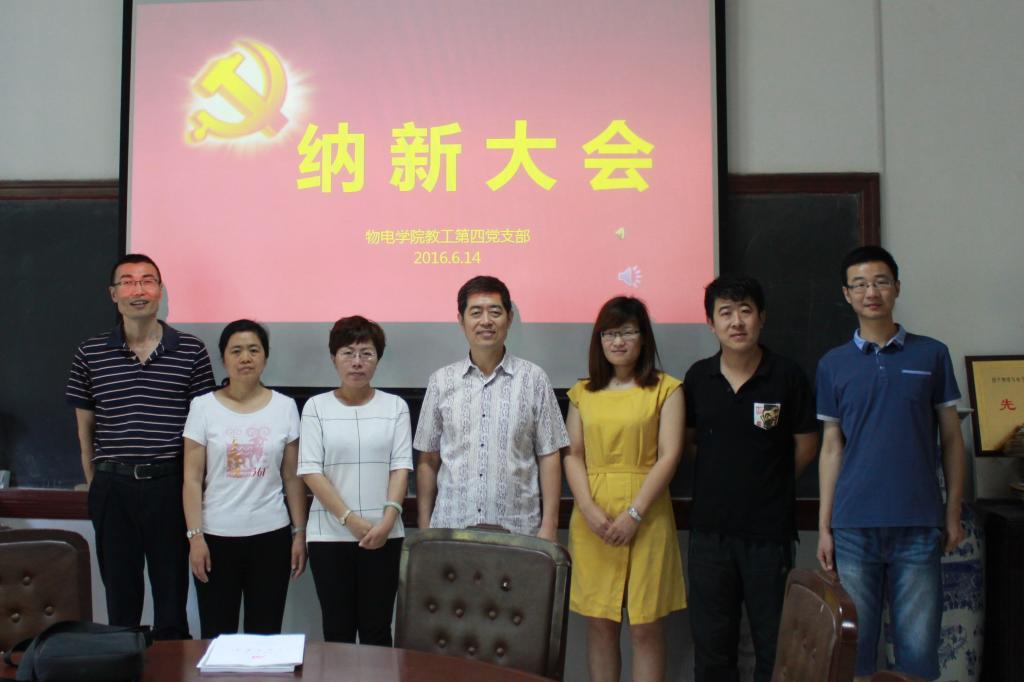 物电学院教工四支部召开党员纳新大会与“两学一做”党课活动 6月14日,千佛山校区教学二楼2241物电学院会议室响起雄壮的《国际歌》声,英国365上市公司教工第四党支部在这里召开支部纳新大会,接收杜军为预备党员...