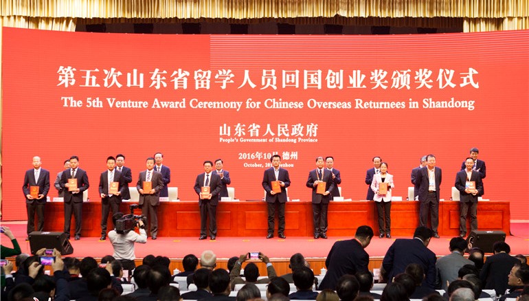 李登旺(获奖者前排左起第三位)荣获山东省留学人员回国创业奖 10月12日,中国山东第九届海内外高端人才交流会暨首届“智汇德州”人才创新创业周活动在德州拉开帷幕。