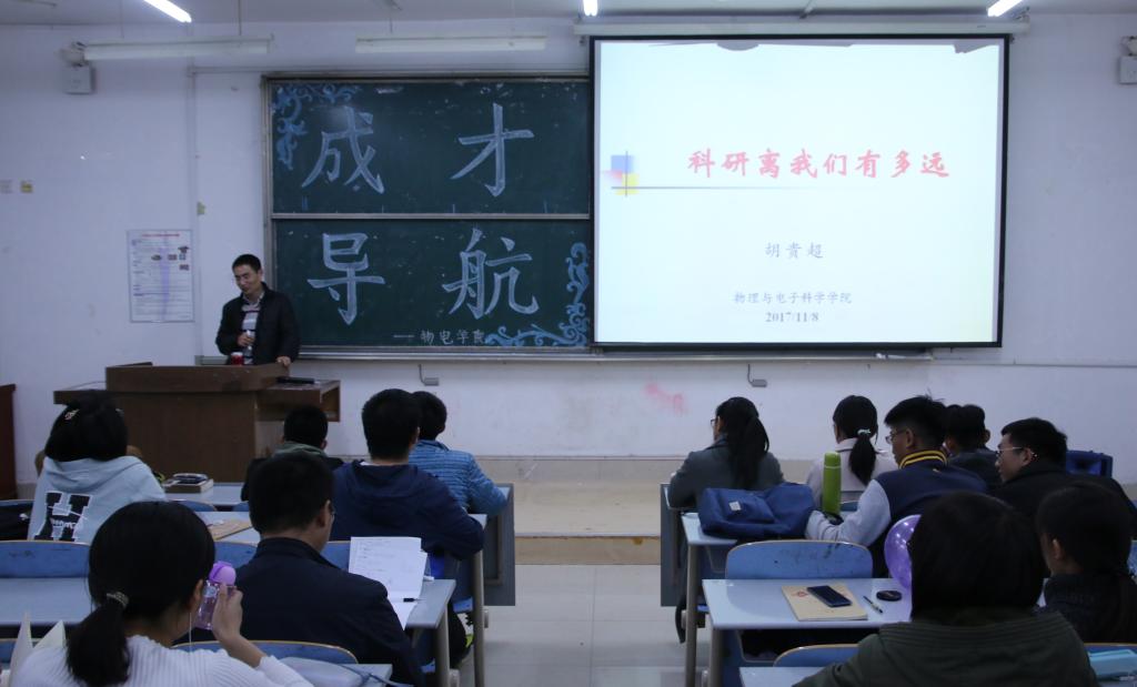为让学院学子更加了解科研、考研导师的选择、出国留学等一些实际问题,做出更好的人生选择,11月8日,英国365上市公司于长清湖校区综合教学楼C区127室举办题为“科研离我们有多远”的成才导航报告会。
