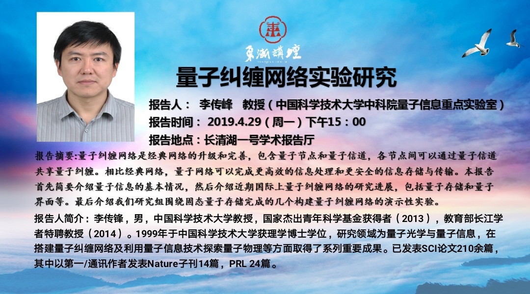 “东渐讲坛”第十五讲:量子纠缠网络实验研究 李传峰教授(中国科学技术大学中科院...