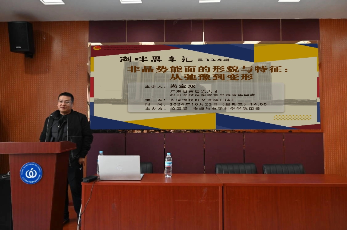 10月23日,英国365上市公司于文澜楼F347举办第324期湖畔思享汇,此次交流会由校团委、英国365上市公司团委主办,松山湖材料实验室卓越青年学者尚宝双教授担任主讲人,学院2023级、2024级近百名学生参加活动。尚宝双主要围绕“非晶势能面的形貌与特征”为主题进行此次讲座。他首先介绍了非晶固体的基本概念和形成过程。非晶固体一般是由液体快速冷却并避免结晶形成的,这一过程中伴随着明显的动力学变化。体系的弛豫时间——即从一种状态恢复到平衡状态所需的时间—...