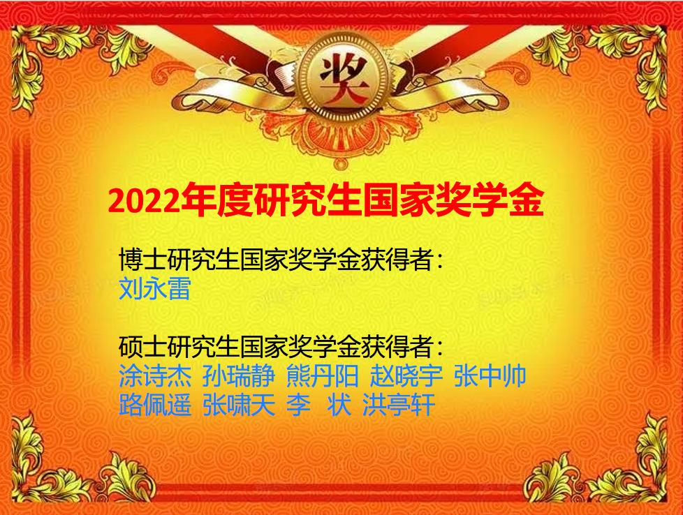 我校近期组织开展了2022年研究生国家奖学金评选工作,经个人申报、学院评审推荐、学校评审,英国365上市公司刘永雷等10名研究生获得2022年度国家奖学金。国家奖学金旨在激励高校学生勤奋学习、努力进取,在德、智、体、美等方面全面发展,由中央政府出资设立的用来奖励特别优秀学生的奖学金,作为一名研究生,能获得国家奖学金是一项莫大的荣誉。我院获得2022年度国家奖学金的10名学生分别是刘永雷、涂诗杰、孙瑞静、熊丹...